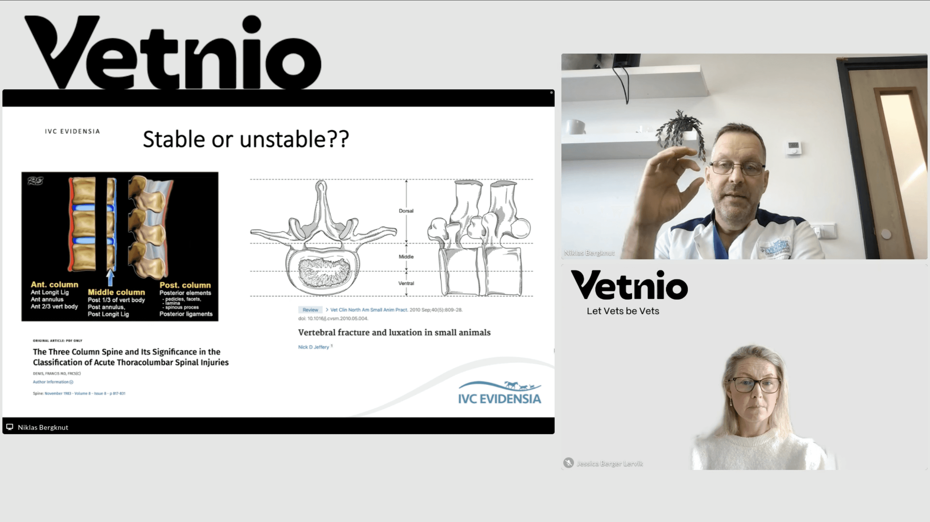 Webinar on acute head and spinal trauma with Niklas Bergknut, Veterinary Neurologist and Neurosurgeon at IVC Evidensia - alongside a live walkthrough of Vetnio's AI documentation and phone call transcription features.